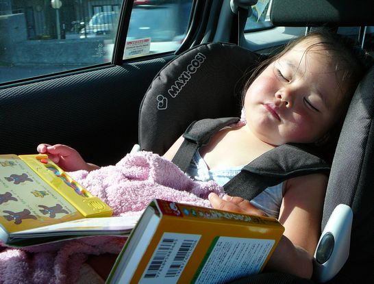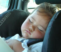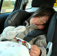 ↑ やっと寝た人。トイレ・ストップやら 給油ストップを経て、ブリストルを越え サマーセットの M5上に有るサービスに着いたのが 7時頃。