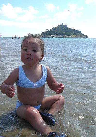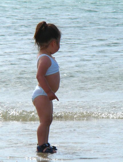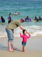 ↑ ダディ と バシャバシャするのよ♪ピグちゃん、波に追いかけられる遊びが カナリお気に召したようで ずっと 「もっとー もっとー」 と リクエストしてました。