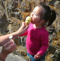 一通り遊んだ後、ビーチを後にして 売店にて アイスクリーム購入。 普通の 何処ででも売っているタイプのモノも有りましたが、やはりココでは Cornish Clotted Cream & Butter で 作られた 地域限定のアイスクリームでしょう!
