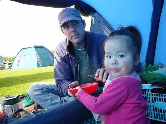 ↑ 疲れてるのに 眠気に対抗しようとするので 白目むいて寝てますよ(汗)延々 A30を走り続け、たどり着いたのは 4年前にも滞在した キャンプ場。 ミナック・シアターから程近い、何も無い 農場地帯に有ります。