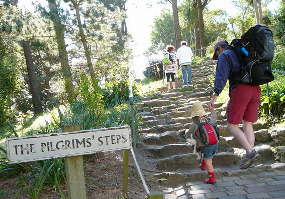 ↑ イギリス人も 芋洗い(笑)そこから 少し離れた丘まで歩き、ピグちゃんを起こしましたよ。 ビーチや 灯台や 対岸が見渡せる、絶景の丘。