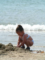 ワタシ達はと言えば、ビーチに行くつもりは これっぽっちも無かったので ジーンズの裾を捲り上げて ピグちゃんの手を引いて 波打ち際で バシャバシャ遊びましたよ。