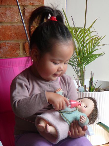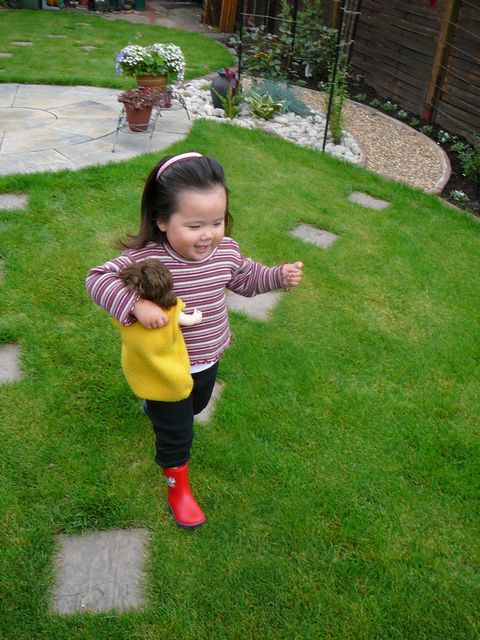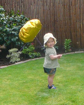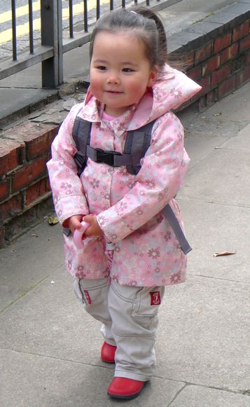 この際、ピグちゃんの手を引きながら ベビーカーから出した荷物を運びながら 子供用イスを運んでいたのですよ、ワタシ。 TJ は 外にベビーカーを運び出して たたんで荷物を出す作業をしていたので。