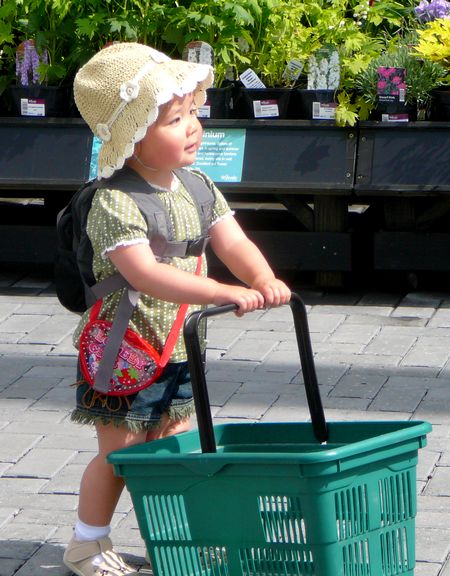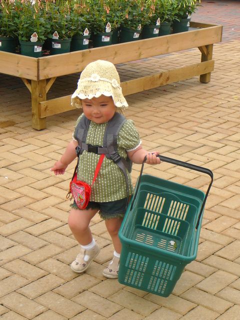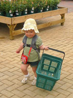 例のごとく お買い物カゴを持って 歩き回り、あげく 勝手に植物の鉢を自分の持ったカゴに入れまくる始末(笑)。