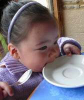 まだ 何もオーダーしていなかったので、近くのスタッフに 「ベビーカーが持ち込めないなら 子供が眠れないし ワタシ達も食事が出来ないので。」 と 断って ピグちゃんのランチも途中だったのですけど レストランを出て 外の待合室で ピグちゃんの食事を終えて 駐車場近くの ティー・ハウスへ。