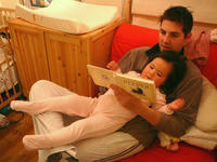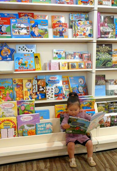 ↑ そして 本のコーナーでは Dora の 本を発見して 座り込んで 読みふけっていましたよ。