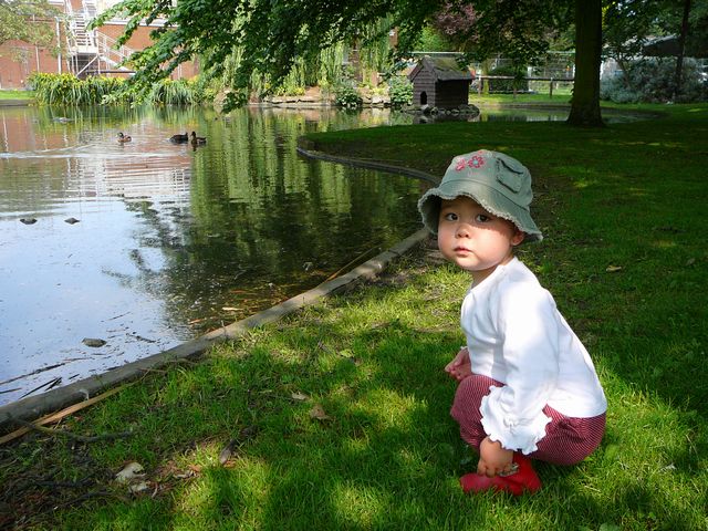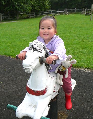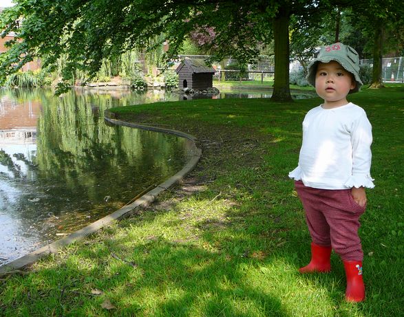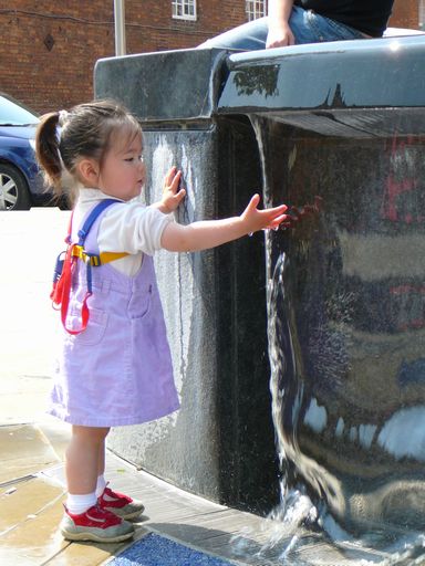 仕方が無いので 噴水で バシャバシャして から 「午後に ダディが起きてから 一緒に ブーブーちゃんと メーさん を 触りに来ようね。」 と 約束。