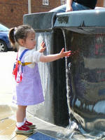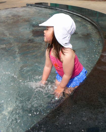 ↑ でも、まだ何だか 不安顔。その後、上に着ていたシャツを脱いで 噴水にジャーーーンプッッ!