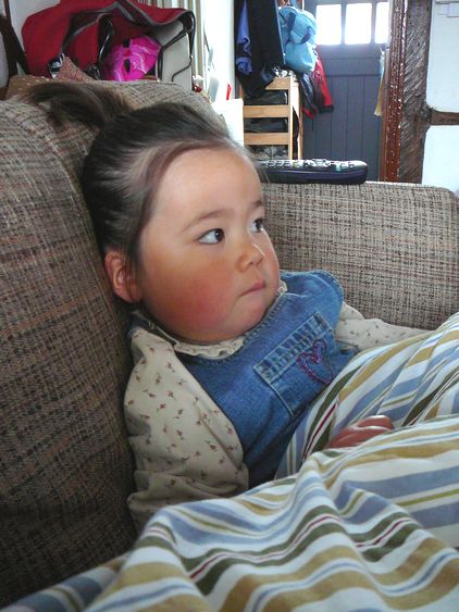 ワタシが 『ダラダラ・モード』 なので ピグちゃんにも少し長目に昼寝をしてもらい、夕食・お風呂は ダディとね。