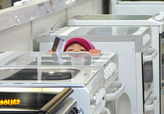 表の看板には 10時半だか 11時から開店するって書いてあるのに、ショッピング・カートをずらっと並べて 入れない様にしてあるの、食品売り場には。
