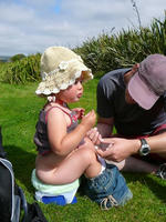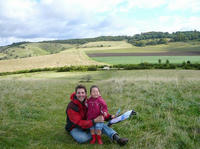 ↑ イギリス人も 芋洗い(笑)そこから 少し離れた丘まで歩き、ピグちゃんを起こしましたよ。 ビーチや 灯台や 対岸が見渡せる、絶景の丘。